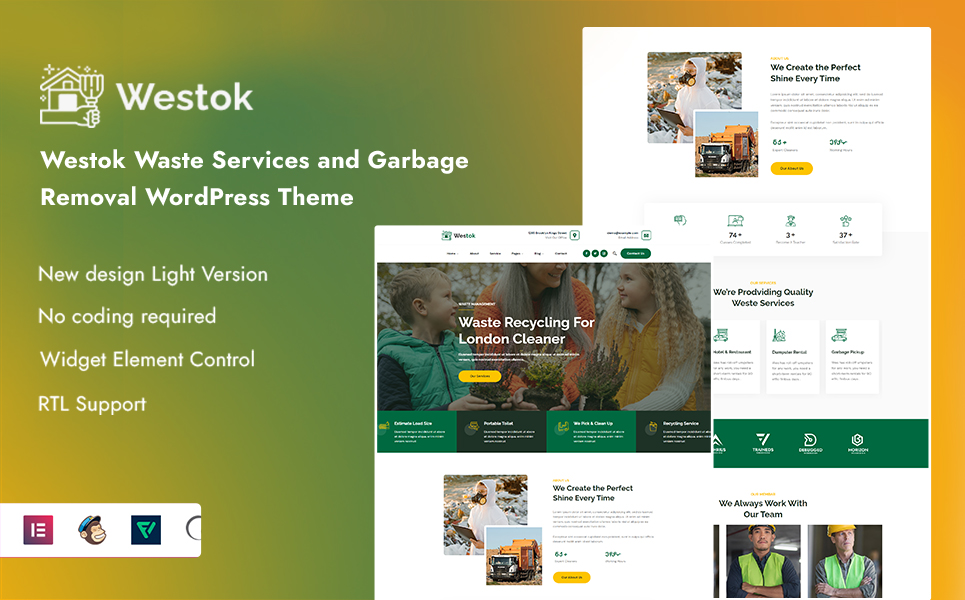 Introducing Westok – Waste Services and Garbage Removal WordPress Theme, the ultimate solution for waste management companies, recycling centers, and garbage removal services. With its clean and modern design, Westok is the perfect choice for businesses looking to showcase their services in an efficient and professional manner.