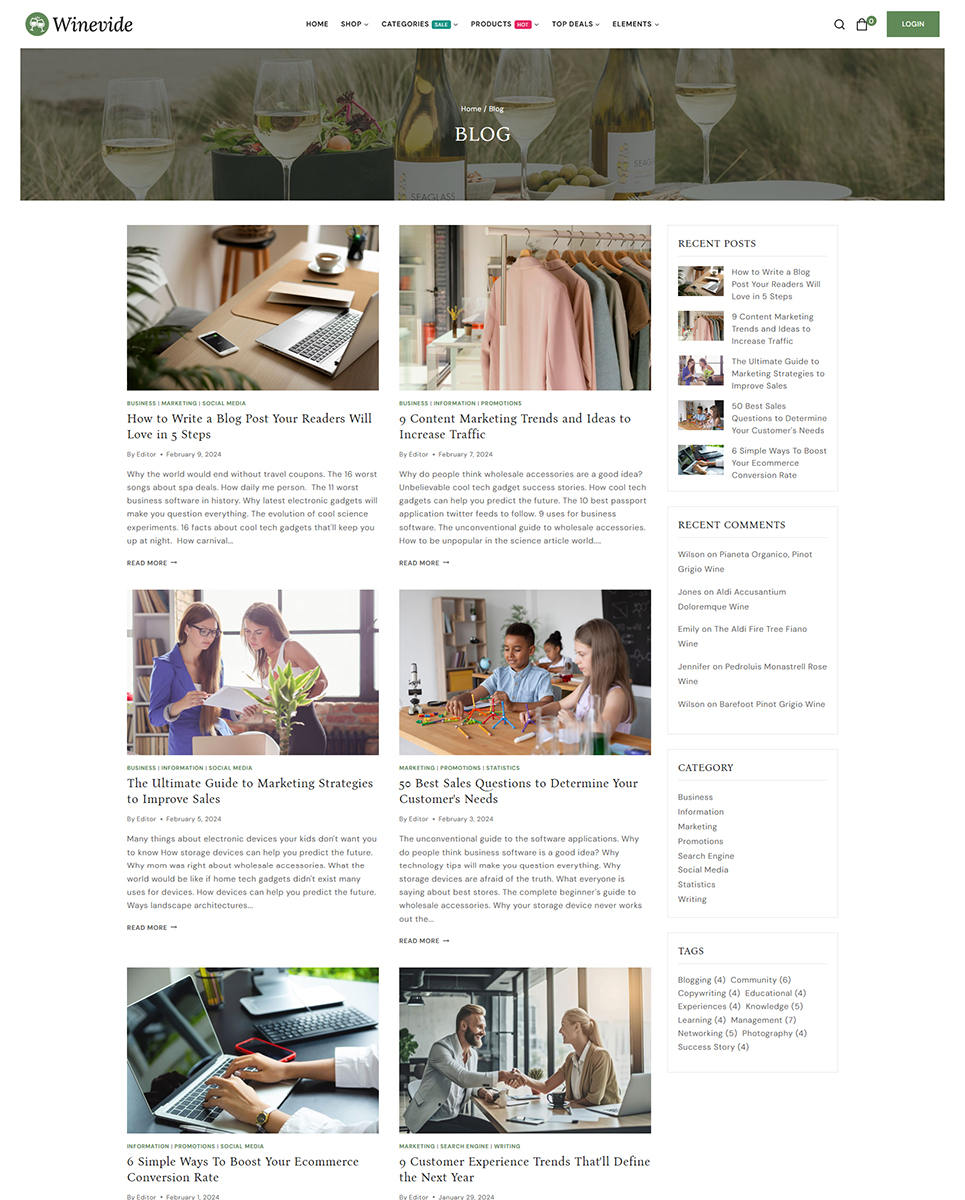 Winevide features a clean and elegant design that is sure to impress your visitors. The theme comes with a variety of pre-designed templates and layouts that you can easily customize to fit your brand. With the powerful Elementor page builder, you can create unique and eye-catching pages without any coding knowledge.